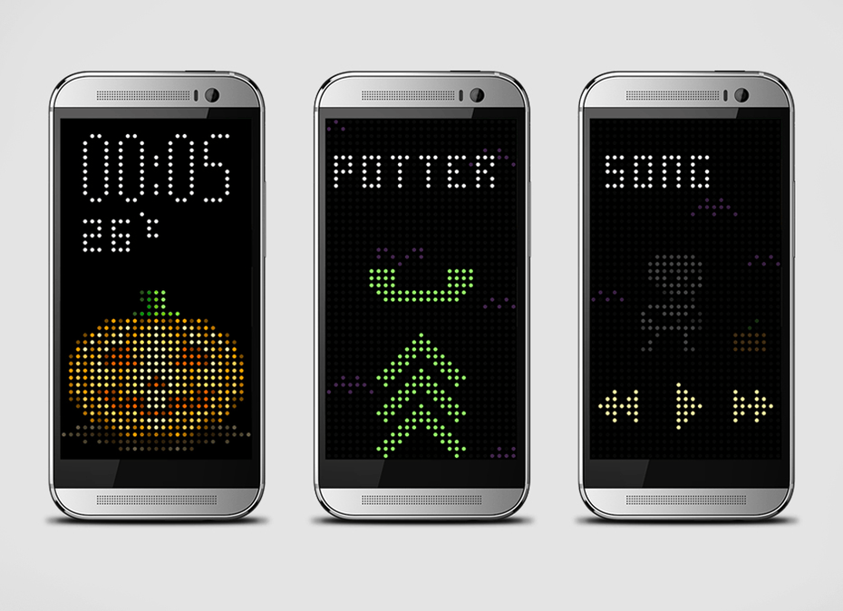 HTC is great at innovating. Not just with it's handsets but also with peripherals. There were a number of items you could attach to the One M8 but probably the most interesting was this one. The Dot View Case. It protected the phone yet allowed you to see through to, check notifications, see the time and even answer calls without opening the cover. We worked on developing themed designs. Here are some that were finally chosen.