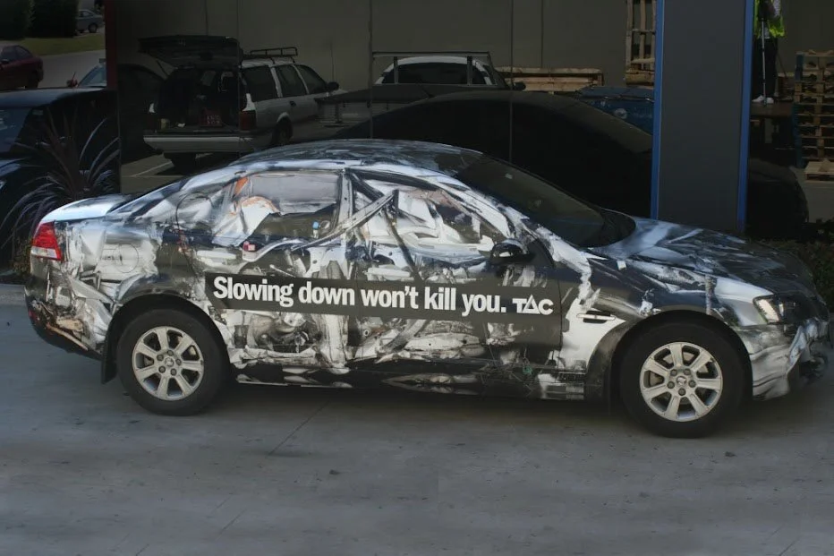 Speed is one of the major factors contributing to crashes on Victoria’s roads. Small changes in speed can result in significant reductions in road trauma. We decided to take that message to the streets. Literally. We did something that had never been done before. We covered a normal car with a 360° skin created from a vehicle involved in a high-speed collision. The car then went on tour to press conferences, media launches and then hit the roads around Victoria to serve as an impactful reminder that slowing down wont kill you.